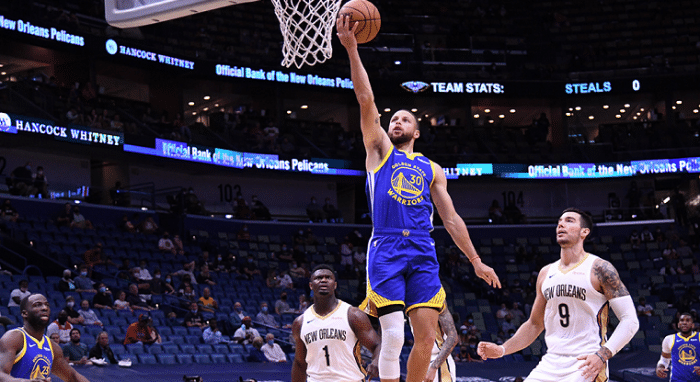 JRS直播网5月4日讯 今天勇士对阵鹈鹕的比赛备受瞩目,鹈鹕志在冲击附加赛,而勇士则要力争取得好的名次。最终勇士以123-108击败鹈鹕,迎来2连胜。此役库里表现强势,他首节就砍下17分,半场轰下21分带队取得领先,全场砍下41分4板8助攻,库里第9次40+,联盟第一。