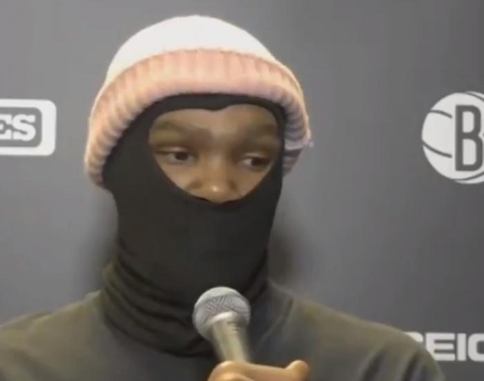 以往的杜兰特总是喜欢“秀”自己的针织帽子,几乎同款,但是每次在新闻发布会上都是戴着不同颜色的,小绿帽、小粉帽等等。杜小帅的气质一直是球迷茶余饭后的谈资,当年的“包工头”装扮更是在网络上疯狂,但这一次的装扮实在太过清奇,莫非是没有口罩用来代替的?
