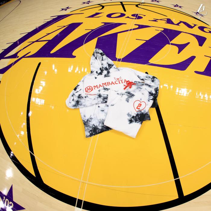 湖人官方晒照,把Gigi纪念服放在斯台普斯球馆的湖人logo处,发推写道:Gigi生日快乐;与此同时,湖人队宣传这款衣服,希望大家购买这款运动装,销售的所有收入都属于曼巴体育基金,用于公益事业。