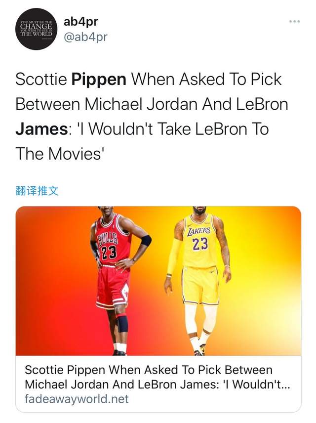 而皮蓬认为乔丹的职业生涯有点短暂,只不过打了11个比较完整的赛季,詹姆斯则是在18岁的时候就进入了联盟,他在数据方面超越乔丹并不是一件奇怪的事情。解释完这个问题之后,主持人又一次给皮蓬抛出了一个带有陷阱的问题,主持人询问他如果要在詹姆斯和乔丹之间选择一个理想队友的话,他会如何选择。而皮蓬的回答十分直接,詹姆斯看了甚至都会感到伤感。