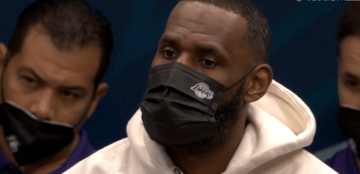 末节镜头多次给到詹姆斯,老詹一脸表情显得十分落寞和沮丧,目光呆滞,比赛刚结束便扭头离场返回更衣室;湖人输球,浓眉心情也不好,和詹姆斯坐在一起。