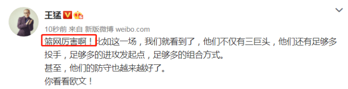 篮网最终逆转猛龙取胜,赛后,篮球解说员王猛送篮网队7个字,非常可观的评价,“篮网厉害啊”。确实如此,现在的篮网再次给人一种无敌的感觉,不仅有三巨头,还有很多的投手,更重要的是,篮网队的防守比前段时间好了太多,欧文以身作则,从防守端做起,这是最让人感到高兴的地方。