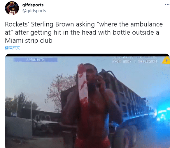JRS直播网讯 此前火箭球员斯特林-布朗在夜店外惨遭殴打,面部多处被划破,到处都是血迹;如今布朗被殴打后画面曝光,赤裸上半身、用毛巾捂着受伤的脸,独自打电话叫救护车,这画面真是太凄凉、太狼狈。