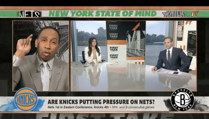 JRS直播网讯 北京时间4月27日,美国名嘴斯蒂芬·A·史密斯,今日在节目中谈到篮网的情况,他表示如果今年尼克斯进了季后赛,而篮网没有夺冠,那杜兰特和欧文会对他们没有加入尼克斯而感到后悔。