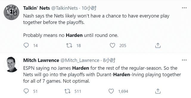 对于篮网而言,哈登若是无法在常规赛复出,最大的难题正是球队磨合,志在冲冠的他们在东部次轮就得面临不小的冲击,届时若是以一个较为陌生的阵容应战,难度不小。
