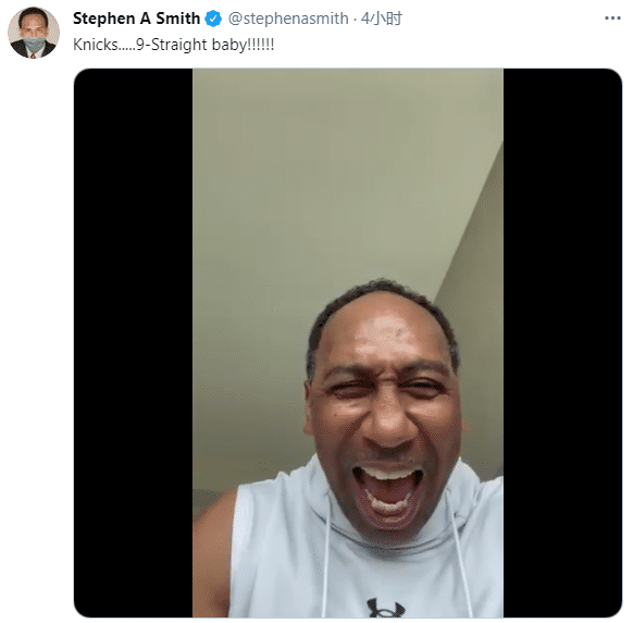 名嘴“美国杨毅”A-史密斯更新动态庆祝尼克斯9连胜,大吼着疯狂庆祝,发推写道:尼克斯9连胜了!!!