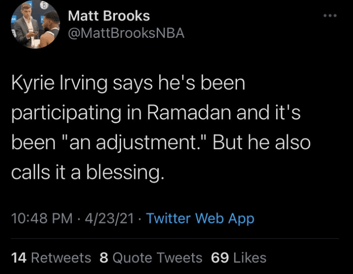 比赛结束之后,欧文接受采访,他直言自己确实是在庆祝斋月,进行斋月的传统断食。