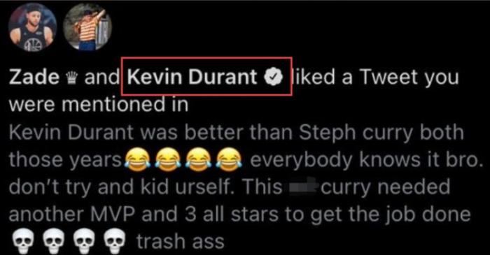 JRS直播网讯 北京时间4月21日,杜兰特又“自导自演”了一出非常有意思的事情,他点赞了一名网友的推特随后又赶紧取消!