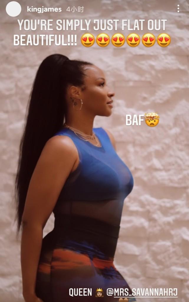 詹姆斯晒出了一张妻子近期拍摄的侧影。情人眼中出西施,詹姆斯多年来时不时在社媒秀个恩爱,碰到纪念日或者萨瓦娜的生日,都要对爱妻表白。这一天,他秀出妻子的近照,并配文写道:“你真是太美了!我的女王!”萨瓦娜比詹姆斯小两岁,两人在相识于16岁,2010年正式完婚,育有两子一女。