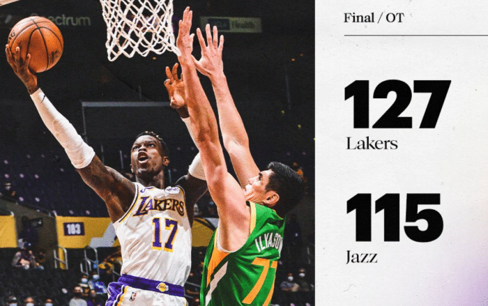 JRS直播网讯北京时间4月18日,湖人主场对阵爵士,戈贝尔、米切尔、费沃斯、康利均缺席,而詹姆斯和浓眉哥也继续养伤。双方都缺少主力,紫金军团最终通过加时以127比115获得胜利!
