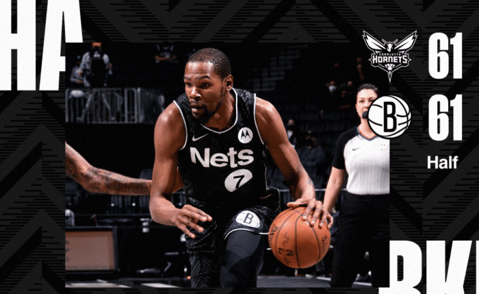 JRS直播网讯 北京时间4月17日,篮网主场迎战黄蜂,杜兰特复出,哈登继续因伤缺席。在上半场的较量中,黄蜂外线三分神准,尤其是布里奇斯,个人状态神勇,半场11中8高效砍下20分6板,得分直接创生涯半场新高!而被临时安排进入先发的新秀凯瑞也没有辜负主帅信任贡献13分,罗齐尔则是送出10分6助攻!凭借这3人的出色表现,黄蜂在上半场和篮网打成61平!