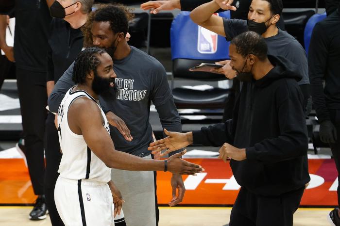 目前篮网38胜18负排在东部第二,仅仅落后东部1个胜场,曾一度拿到东部第一;不过篮网目标并不是东部第一,他们的最终目标是总冠军。