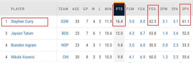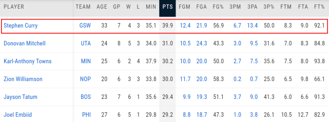 其一,库里在4月份的场均得分达到39.9分,高居联盟第一,而且是遥遥领先,同期排名第二的是爵士的米切尔,场均得分31分。如此疯狂的得分表现,也让库里的赛季场均得分提升到30.7分,距离排在首位的比尔(31.0分)只差0.3分。如果库里延续如此火热的手感,超越比尔只是时间问题。库里在2015-16赛季曾经成为联盟得分王,本赛季他有望再次拿到这项荣誉。