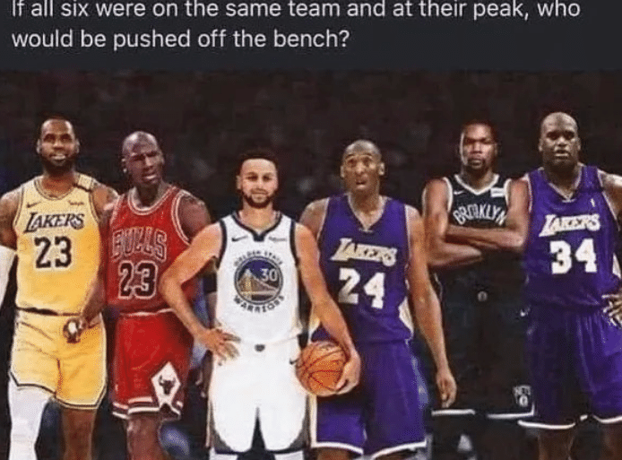 JRS直播网讯在NBA历史上,有很多伟大的球星,而对于一支球队来说,首发只能有5人。就拿梦八来说,强如韦德,保罗,德隆等伟大球星,也只能担任替补,不是他们不好,而是首发球员都太厉害了。就在近日,美媒发问,詹姆斯和乔丹,科比,库里,奥尼尔,杜兰特这6人如果在同一支球队,谁打替补?很显然,美媒这是在挑事情,找一些话题来吸引关注,不过,这套6人阵容,如果真要选出首发5人,还真的不是一件容易的事情。