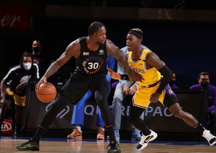 据此前美媒体的报道,2018年休赛期,在得知詹姆斯要加盟湖人后,兰德尔主动申请离开湖人。之后他先是加盟了鹈鹕,最后又来到了尼克斯。在离开湖人后,兰德尔的表现也是越来越好,本赛季场均能拿到23分10.7篮板6助攻0.9抢断,投篮命中率46%,三分球命中率40%,入选了全明星。
