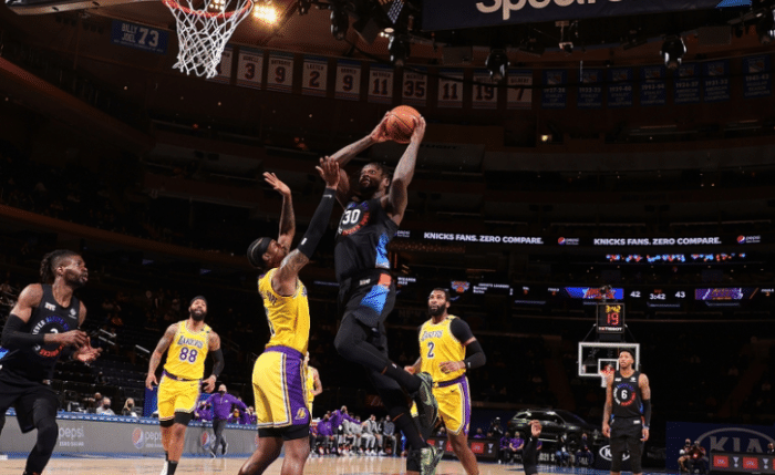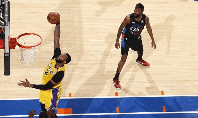JRS直播网4月13日讯 今天NBA常规赛结束了一场焦点战,湖人客场96-111不敌尼克斯吃到败仗。这场比赛詹姆斯和浓眉哥依旧缺席,庄神德拉蒙德拿下3分10板1断1帽的数据,整体的表现相对一般,而且在比赛中他的篮下防守不到位,失误也偏多。