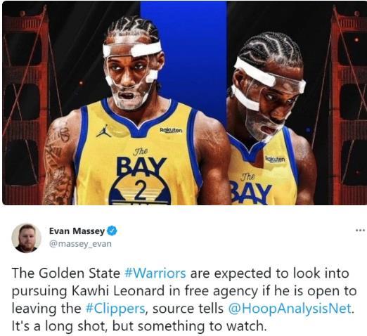 欧文这边的事情沸沸扬扬,勇士那边因为怀斯曼赛季报销的问题,或许球队的赛季目标也有了改变。著名NBA记者EVAN MASSEY报道,根据知情人透露,如果伦纳德对于离开快船做出开放的态度,勇士将在休赛期追求伦纳德,当然就目前勇士队的薪资情况,大概率只能先签后换,勇士队的乌布雷将成为重要的交易筹码之一,很多球迷或许会认为这个筹码不够,可是当先签后换的方式出现的时候,留给快船队的选择就不多了。