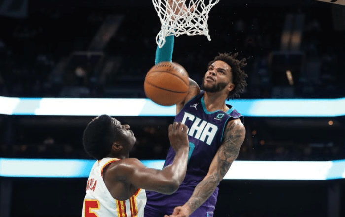 JRS直播网讯今天NBA常规赛结束了一场早场比赛,黄蜂遗憾的以101-105不敌老鹰,虽然输球,但黄蜂球员布里奇斯也有不俗的发挥,他全场贡献23分7板2助的数据,其中隔扣卡佩拉更是点燃了所有人的激情。