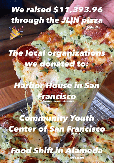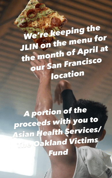 很快“JLIN Pizza”就吸引了人们的光顾,毕竟这是明星效应,林书豪在当地的影响力也是很大的。这家披萨店的老板表示自从和林书豪合作之后,生意也更好了,同时JLIN Pizza的5%销售额会捐给林书豪选中的当地的慈善机构,而这家店已经在奥克兰开设第一家分店,4月将会在旧金山继续开分店。