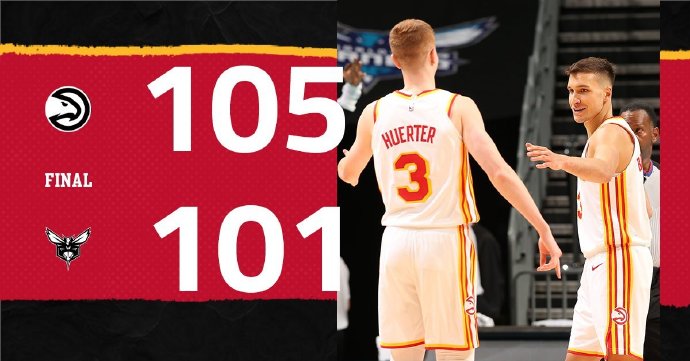 老鹰105-101险胜黄蜂 博格达32分&8记三分 卡佩拉20+15 布里奇斯23+7