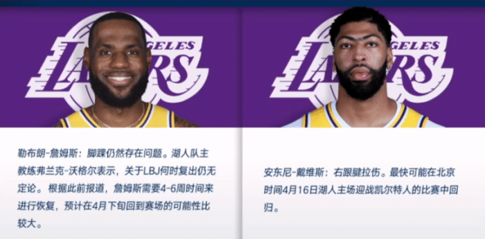 而据NBA名记报道,詹姆斯离复出大概还有3周时间。也就是说,在3周之后,完整体湖人就要来了。不得不说,老詹和浓眉的复出时间相比预期有所提前,看起来是要火线驰援湖人,最近球队状况不佳。
