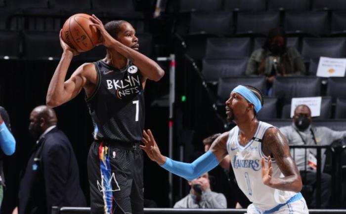 JRS直播网讯北京时间4月11日 NBA常规赛,篮网主场101-126不敌湖人。这场比赛转折点就是欧文和施罗德双双被罚下,这样湖人队继续扩大领先优势,也宣告了篮网基本追分无望,在第四节基本成为了垃圾时间,但是这时候杜兰特依然在场上,本场比赛是杜兰特伤愈复出后的第2场比赛,他首发出战24分钟,17投8中,罚球5中5,拿到22分7篮板5助攻8失误。最后湖人队已经领先了20多分的时候,纳什主教练也没有将杜兰特换下,这一调整也备受球迷质疑,毕竟杜兰特刚刚伤愈复出,在比赛基本拿不回来的情况下,应该让杜兰特保休息,避免伤病。
