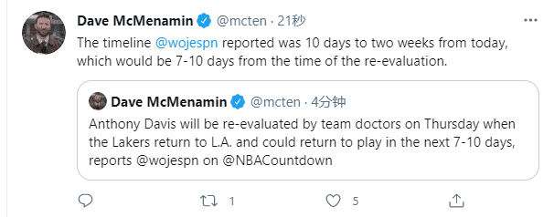 另外要说的是浓眉最新伤情出炉,浓眉将在周五返回洛杉矶后重新接受医生的评估,重新评估后7-10天内伤愈复出;湖人终于有了一个好消息,但愿浓眉早日100%痊愈复出。