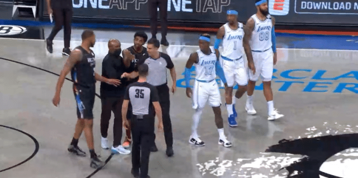 JRS直播网讯湖人和篮网比赛中,施罗德和欧文互喷垃圾话双双遭驱逐离场,施罗德出战20分钟11投7中轰下19分4助攻,在场正负值+16,欧文11投6中拿到18分4篮板,湖人和篮网主力都被驱逐引热议。