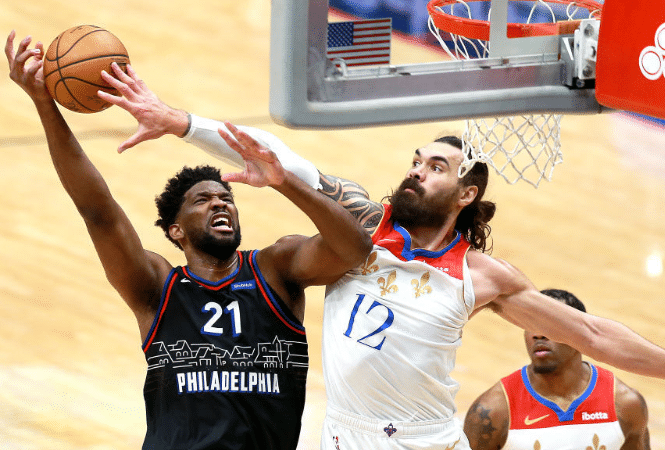 此役鹈鹕英格拉姆和刘易斯两员大将迎来复出,双方上半场打得势均力敌,半场打成50平。恩比德此役打得很吃力,而锡安半场轰下17分8板。下半场比赛,锡安延续自己火热的手感,下半场再轰20分。而恩比德的状态则更加低迷,下半场只得2分。虽然哈里斯全场拿下23分,但无奈双拳难敌四手,最终鹈鹕取得胜利。