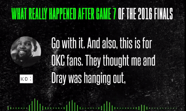 杜兰特赞同格林的表述,也吐槽起当年的另一件传闻。杜兰特在节目上说:“还有雷霆球迷,他们以为我和追梦在分区决赛时就玩在一起,我听到这种话时,心想‘WTF,你们把我当成什么人了?’谁会相信追梦会在西决期间来我家玩耍?拜托,别瞎扯了!”追梦也回应道:“没错。”