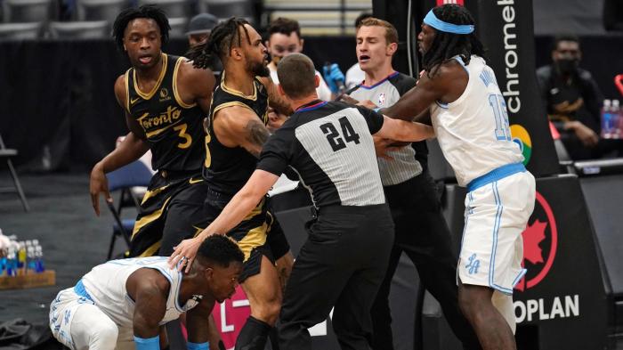 此前NBA联盟追加湖人和猛龙冲突的处罚,哈雷尔被追加罚款2万美元,阿奴诺比被罚3万美元,范弗利特、本布里和霍顿-塔克因擅离离开替补席被禁赛一场。