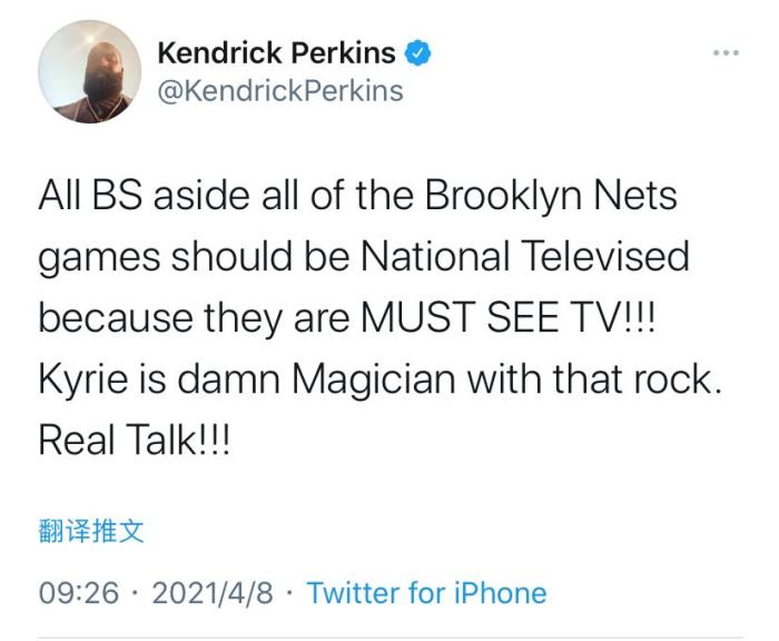 JRS直播网讯自从哈登加盟篮网以来,帕金斯似乎已经成为篮网球迷,之前帕金斯曾经为哈登打抱不平,认为本赛季的MVP应该属于哈登,并且认为哈登不再MVP排行榜前五里是非常不合理的一件事情。而就在今天,帕金斯再一次的站到了篮网这一边,虽然哈登受伤,要缺席一段时间了,但是杜兰特今天选择了复出,而且篮网三节就打卡击败了鹈鹕队。今天欧文的表现尤其抢眼,拿下了24分,是篮网赢球的头号功臣。而欧文的表现也是再一次的征服了帕金斯,现在帕金斯也是忍不住地去赞美了欧文。
