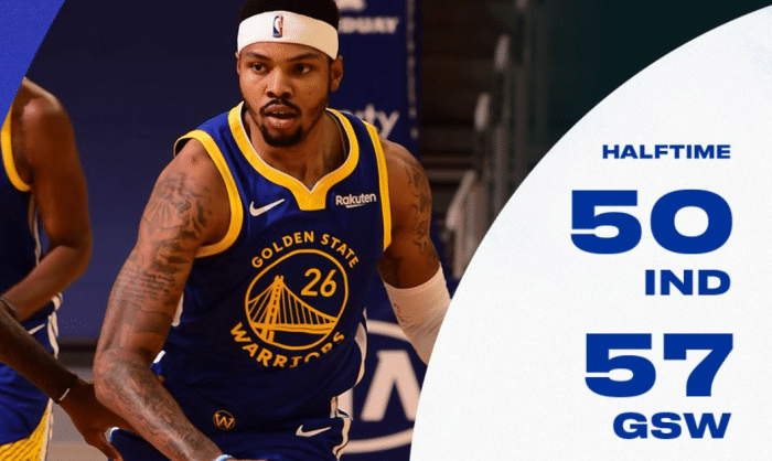 首节比赛,勇士只让步行者仅得到19分,而步行者对库里的防守也很严密,整个上半场,萌神只出手5次得到7分,其中第二节更是罕见0出手!但勇士仍然取得了7分领先!乌布雷半场命中3记三分贡献15分,维金斯也有12分进账!