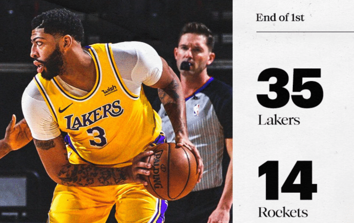 JRS直播网讯 北京时间1月13日,湖人客场再战火箭,在上一场比赛中,紫金军团就18分大胜航天城。而今天这一战,湖人在上半场再次打爆火箭!