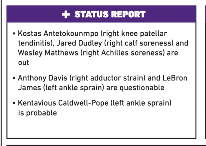 JRS直播网1月12日讯 湖人队公布下一场打火箭的伤病名单,杜德利、马修斯和字母弟因伤缺席比赛,波普大概率出战(75%可能性上场),詹姆斯和浓眉出战成疑,50%可能性上场;下一场打火箭,湖人三名球员因伤缺阵,反观火箭队,豪斯被隔离继续缺席,沃尔和戈登两大主力也是出战成疑。