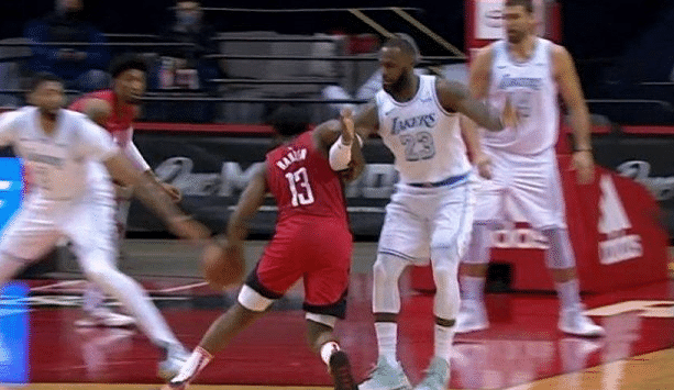 JRS直播网1月11日讯 NBA常规赛火湖大战结束了争夺,最终火箭遗憾输给湖人,这场比赛火箭核心哈登还是很拼的,他全场比赛14中7,其中三分球8中2,罚球5中4,拿下了20分6板9助,还有多达7次失误。同时哈登在突破的过程中夹着詹姆斯的胳膊造犯规引发争议,被外界批评。