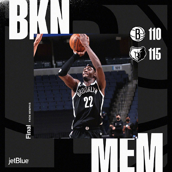 JRS直播网讯:北京时间1月9日消息 NBA常规赛继续进行,灰熊坐镇主场迎战篮网。此役篮网两员大将欧文和杜兰特继续缺阵,瓦兰丘纳斯则由于防疫协议仅出战半场。虽然勒韦尔独得43分打出逆天表现,但灰熊多点开花,主场115-110险胜篮网,结束三连败。