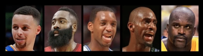 居然奥尼尔都出现了,那么自然少不了库里这位三分神射手,俩人一内一外就令人难以应付了。居然还有哈登和麦迪两位得分告诉助阵,当然这是在不考虑球权的前提下。还有加内特的全能,妥妥看到这是顶配版的“死亡五小”啊!