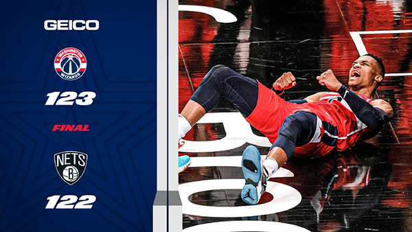 NBA简报:奇才123-122险胜篮网 比尔27+10