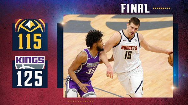 JRS直播网讯:北京时间12月30日,2020-21赛季NBA常规赛继续进行,国王队在主场迎战掘金队。最终,国王队以125-115战胜掘金队。