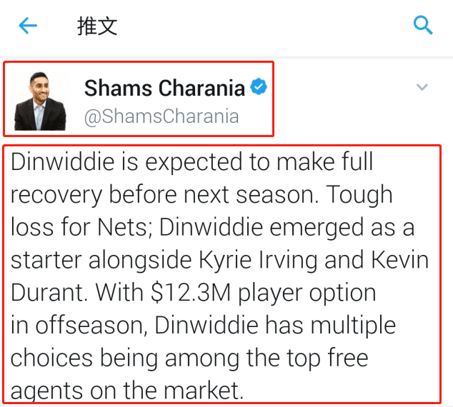 用丁威迪去交易谁呢?突然而来的伤病让蔡老板不用在考虑这个问题了,在昨天对阵黄蜂队的第三节,丁威迪在突破时受伤,随后走回更衣室。在赛后,著名篮球记者SHAMS爆料,丁威迪遭遇右膝十字韧带部分撕裂,SHAMS表示丁威迪有望在下赛季开始之前完全康复,这也意味着本赛季能够场均砍下6+4+3的球星本赛季将遭遇报销。SO,问题来了,篮网丁威迪赛季报销,老板蔡崇信能得到保险公司多少赔偿呢?那啥,还请诸君听我往下细细道理啊。
