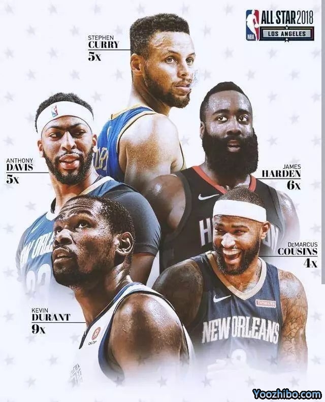 西部:库里(队长)、杜兰特、考辛斯、戴维斯、哈登