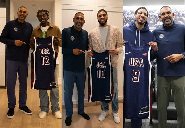 作为这支美国男篮的总经理,格兰特-希尔把每件球衣亲自送到球员手中,如今,12位球员都已经收到自己的国家队战袍,并合影留念。希尔在采访中揭秘了这支国家队的组建过程,两大关键因素被考虑。美国队已经连续4届奥运夺冠,如今,他们正式开启了又一次的冲金之旅。