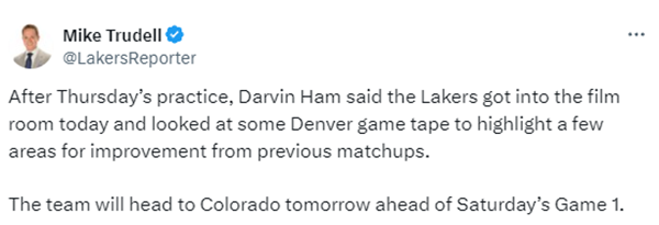 今日,湖人全队在球队的训练馆中备战与掘金系列赛的第一场比赛,詹姆斯和浓眉带队全力备战G1,训练结束后,全队围在一起喊口号加油;据湖人记者Mike Trudell报道,哈姆表示在训练后,湖人队进行了录像会议,看了一些掘金队的比赛录像,强调了一些与之前比赛相比需要改进的地方。
