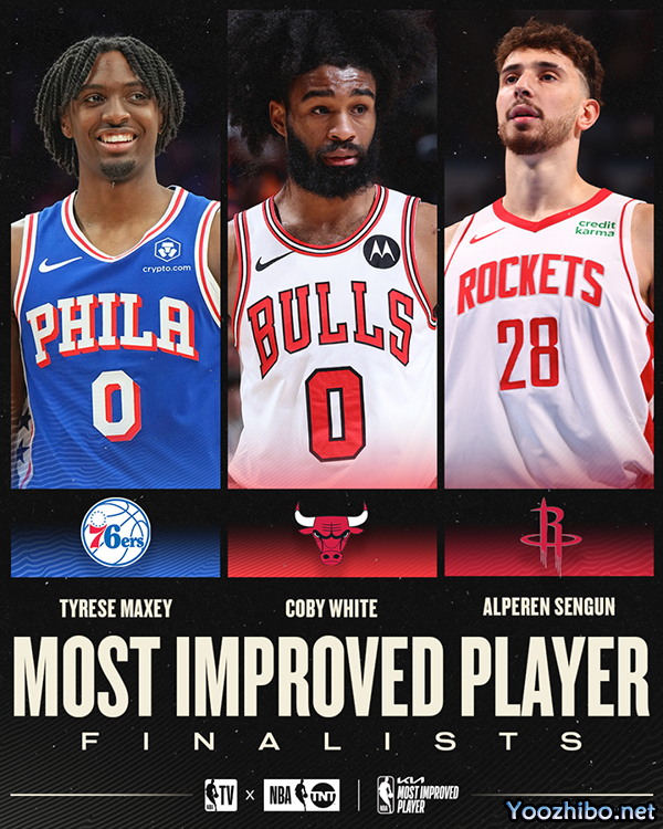 马克西出战70场,场均25.9分3.7篮板6.2助攻,场均得分比上赛季提升5.6分。科比-怀特出战79场,场均19.1分4.5篮板5.1助攻,场均得分比上赛季提升9.4分。申京出战63场,场均21.1分9.3篮板5助攻,场均得分比上赛季提升6.3分。
