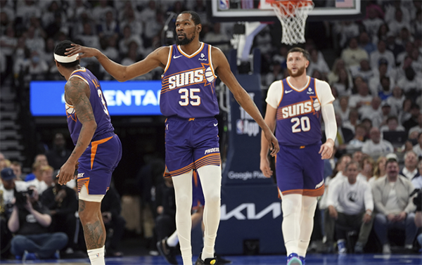 JRS直播网讯 北京时间4月24日,太阳G2又惨遭森林狼,总比分0-2落后陷入绝境,布克13中6、三分6中1拿到20分5助攻6失误6犯毕业,惨遭疯狂嘲讽;杜兰特15投6中拿到18分6篮板2失误,比尔17中6拿到14分4篮板6助攻4失误,三巨头45投18中疯狂打铁还出现12次失误,合砍52分提前认输,0-2落后触发出局定律。