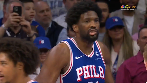 第二节,恩比德中投得分后踢到米罗的裆部,后者痛苦倒地,大帝如此动作也引争议。