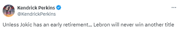 湖人0-3落后引热议,名嘴帕金斯表示:除非约基奇提前退役,否则詹姆斯将永远不会再次赢得总冠军。前掘金主帅乔治-卡尔更推写道:一个GOAT的灵魂真的能被偷走吗?我就是代表我在卡罗莱纳州的一个朋友问一下。