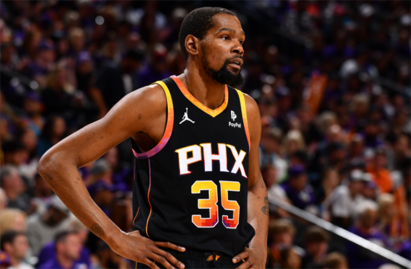 太阳0-3濒临出局,杜兰特坐在替补席满脸无奈,赛后绝望离场。