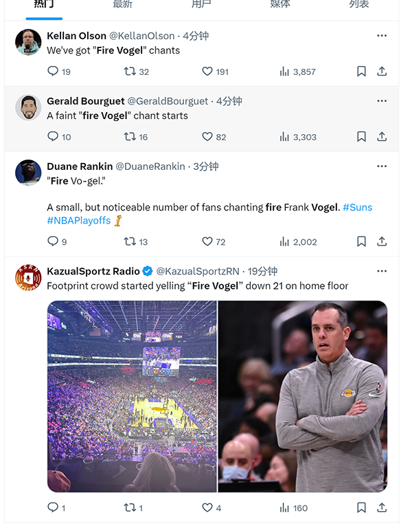 JRS直播网讯 北京时间4月27日,系列赛G3回到主场,太阳109-125又被森林狼打爆了,杜兰特绝望离场,太阳球迷高呼沃格尔下课。